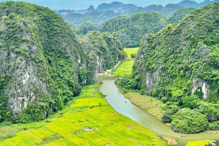 If you’re traveling through northern Vietnam, a day trip to Ninh Binh is an absolute must. Celebrated for its dramatic limestone karsts, rich historical heritage, and captivating natural beauty, the region offers a truly memorable escape from the city. Among its highlights is the Trang An & Mua Cave small-group tour, which pairs a peaceful boat ride through the UNESCO-listed Trang An Ecotourism Landscape with a visit to the iconic Mua Cave. From its summit, sweeping panoramic views over winding rivers and emerald rice fields provide an unforgettable finale to this remarkable journey.